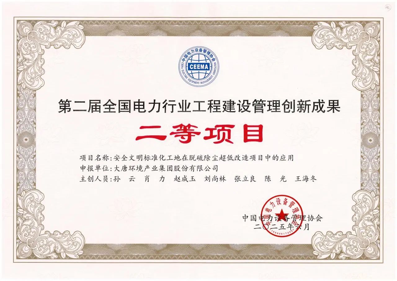 本网讯 近日,中国电力设备管理协会公布第二届全国电力行业工程建设管理创新成果评选结果。加拿大预测28 环保分公司鸡西项目部申报的《安全文明标准化工地在脱硫除尘超低改造项目中的应用》项目,凭借其在安全管理实践中的显著成效,获二等项目奖项。