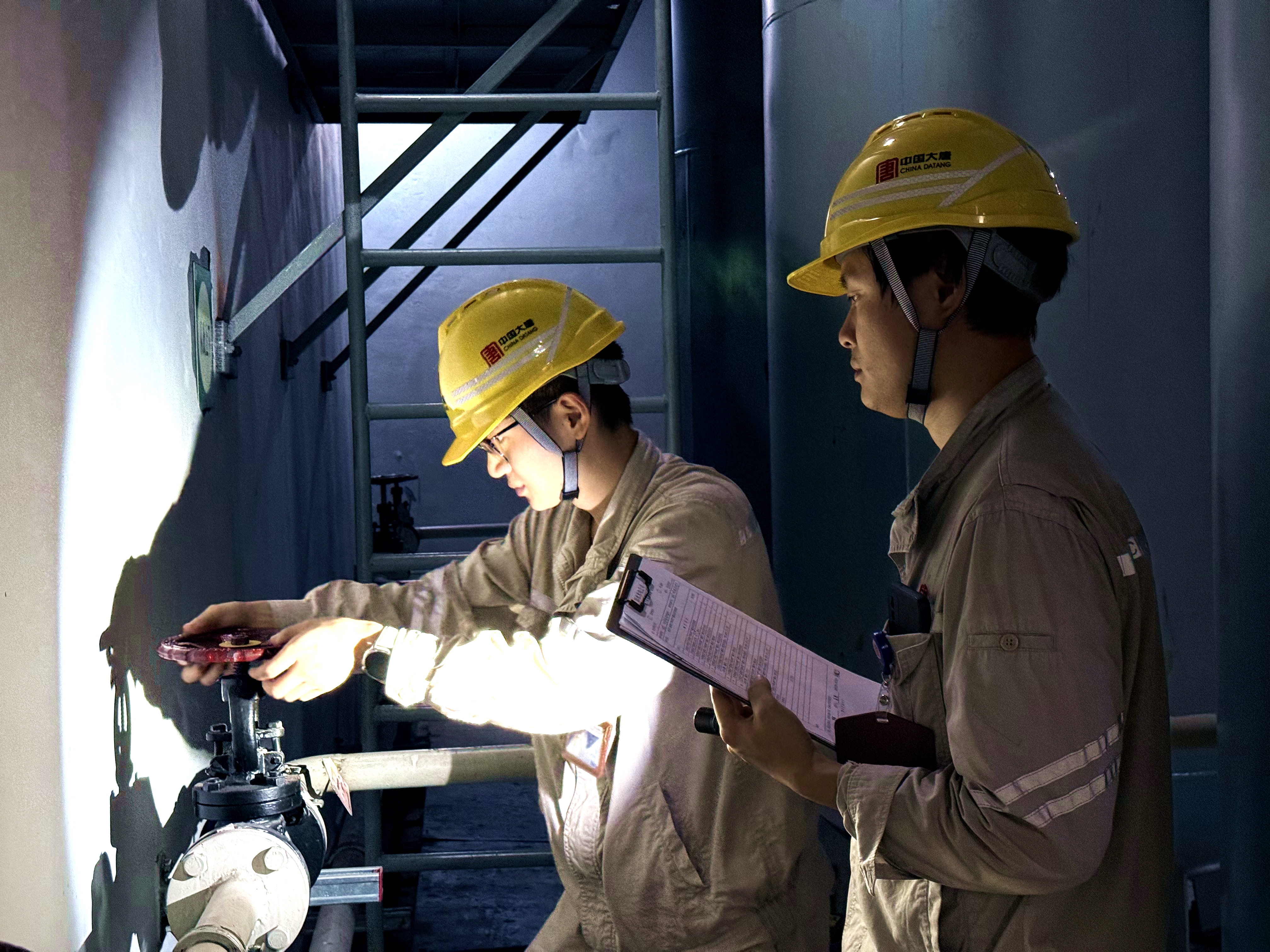 7月19日,刚踏入彭水水电站地下厂房高压气室,彭水水电公司运行班罗渔和肖寒的工装后背就洇出深色的汗痕。